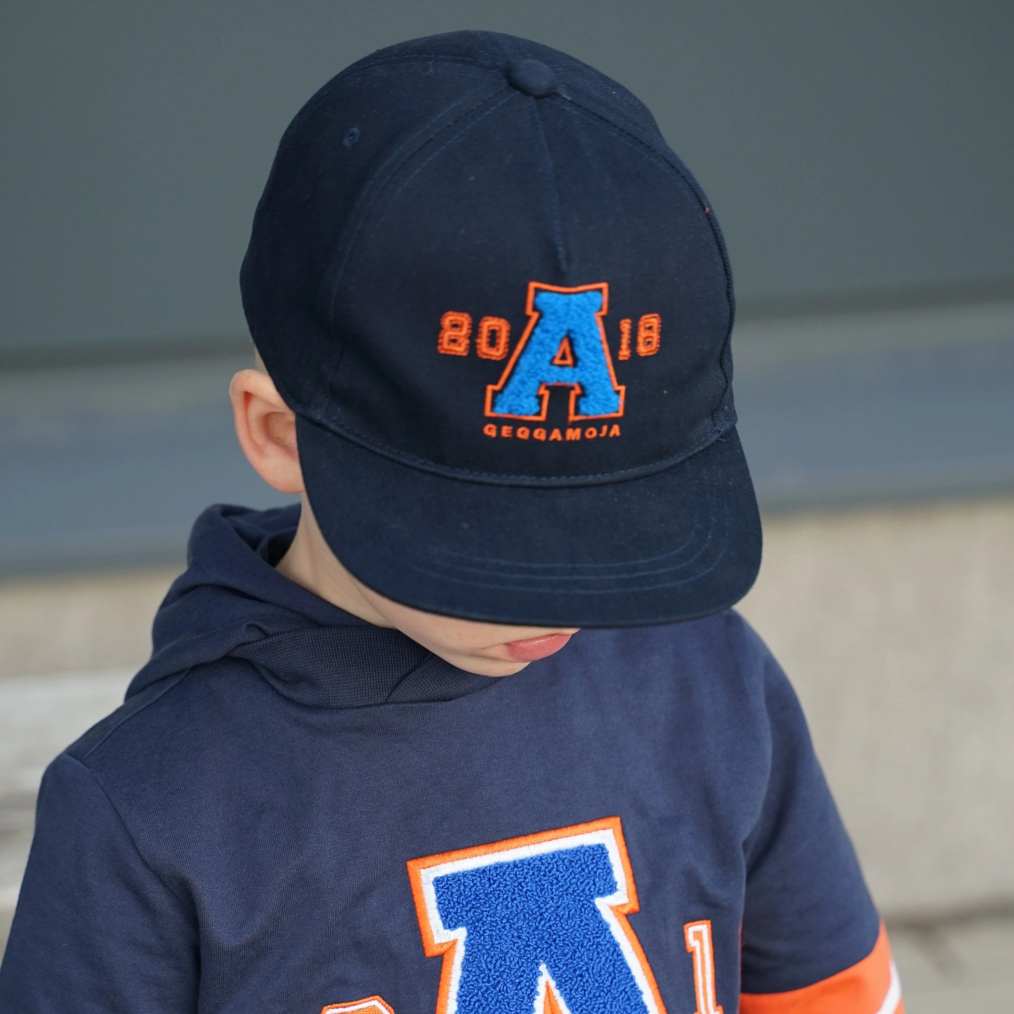 Cool keps i marinblå med brodyr. Kepsen är i baseballmodell med och har ett reglerbart spänne bak.