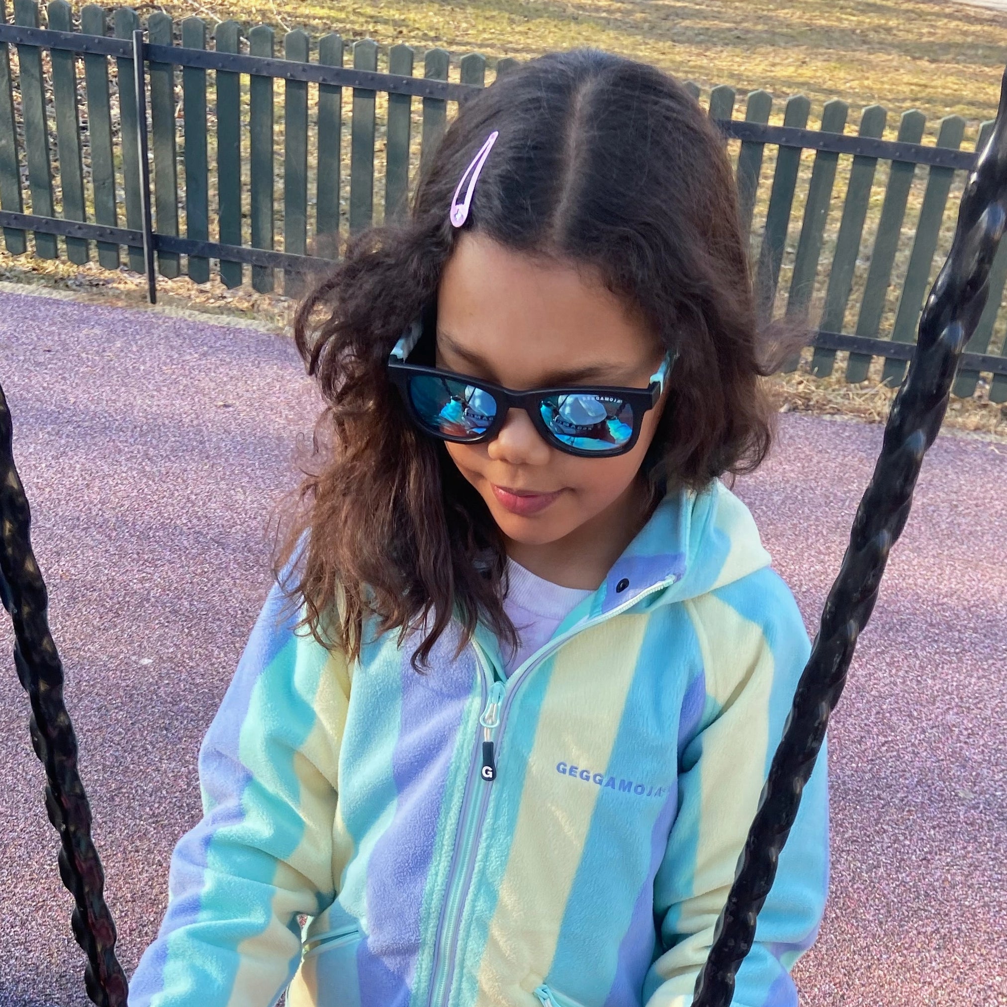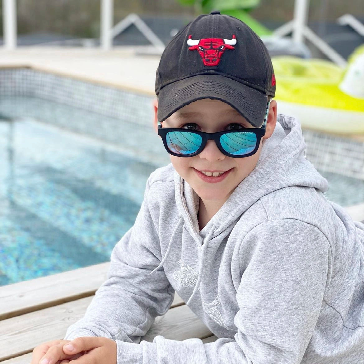 Praktiska glasögon - Mjuka, följsamma och okrossbara. Solglasögonen är tillverkade i en BPA-fri plast som är fri från tungmetaller och skadliga kemikalier. Medföljer gör en reglerbar snodd som håller solglasögonen på plats. Glasögonfodral medföljer.