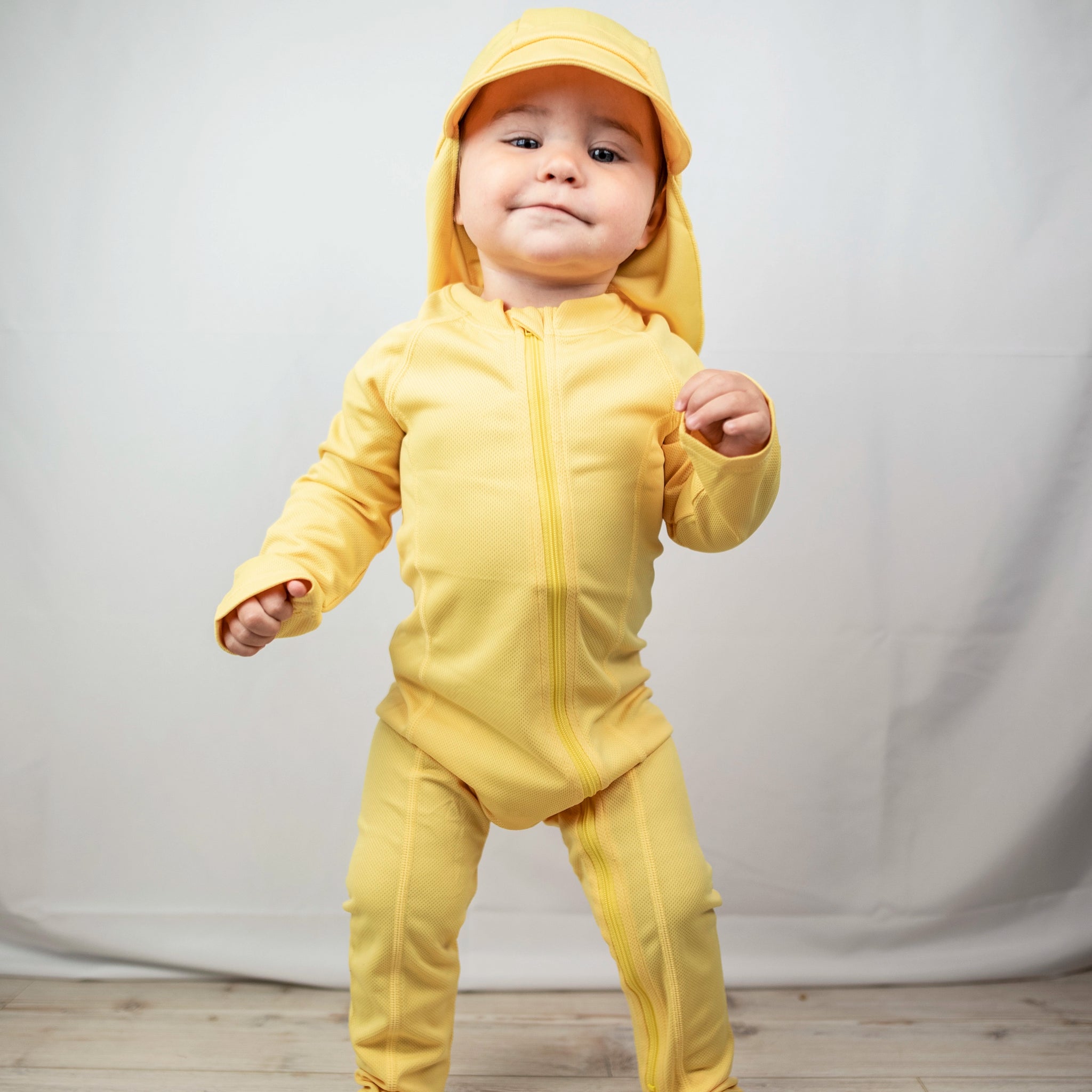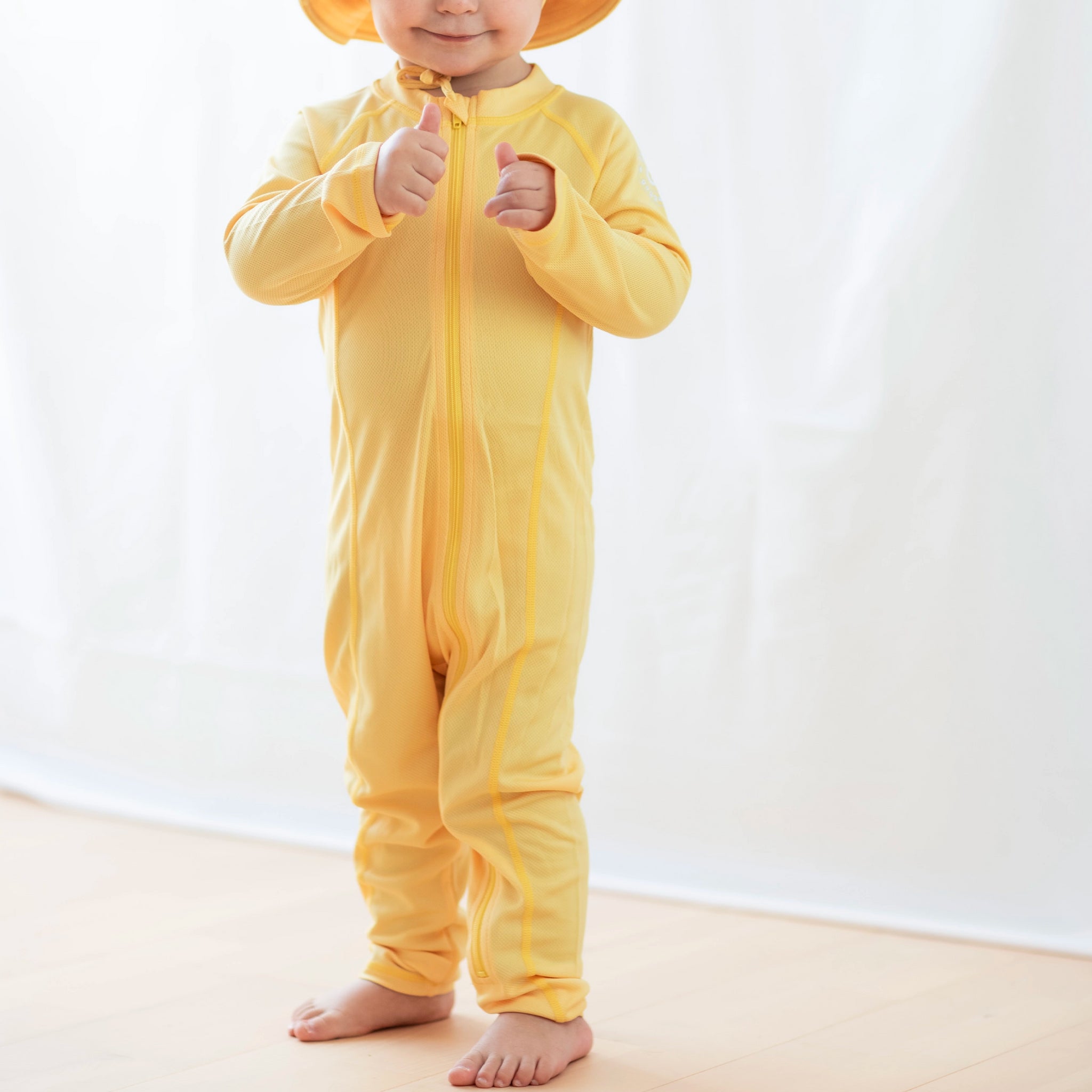 En storfavorit hos barnfamiljer. Med en UV dräkt skyddar du ditt barn från solen starka stålar både vid poolen eller på stranden. UV-dräkten är tillverkad i ett snabbtorkande material, med UV-50+ som blockerar 98% av solens farliga UVA- och UVB-strålar. Dräkten har en dragkedja framtill för enkel på och avklädnad.