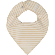 Bib/dregellapp i Geggamojas klassiska ränder vit och beige. Tillverkad i ett vattentätt öko-tex-certifierat polyestermembran. Tryckknappar som knäppning och reglering bak.