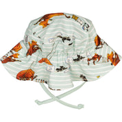 En solhatt i mjuk sval bomull i Mamma Mu print. Solhatten har snören för knyt under hakan och resår baktill för bästa passformen.