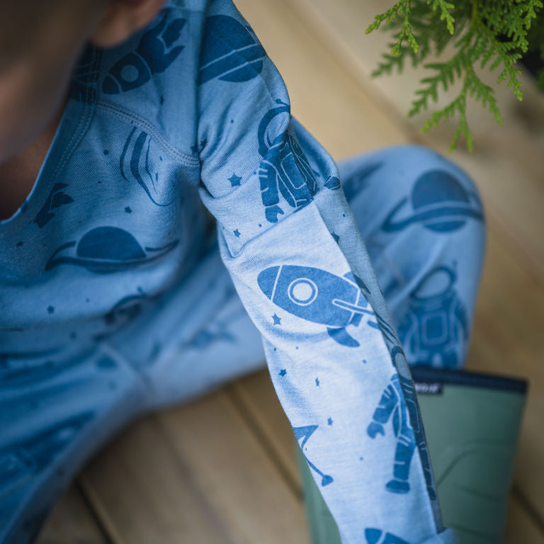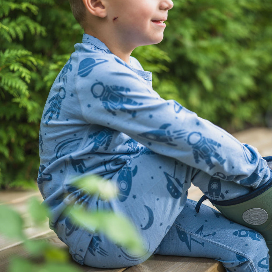 Underställströja i mulesingfri merinoull. Används som lager 1 under vinterkläderna. Tröjan har muddar i armslut. Merinoull är ett lätt material som känns mjukt och skönt mot barnets hud. Merinoull har unika egenskaper som isolerar mot kyla men låter kroppen andas.
