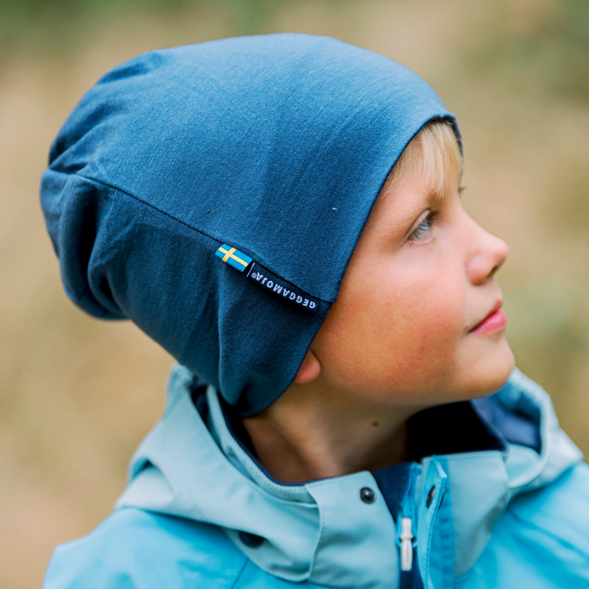 Mössa i mulesingfri merinoull. Mössan kan användas i alla sammanhang och perfekt vid aktiviteter.. Merinoull är ett lätt material som känns mjukt och skönt mot barnets hud. Merinoull har unika egenskaper som isolerar mot kyla men låter kroppen andas. Det reglerar kroppstemperaturen när det är varmt eller kallt. Tillverkad i Woolmark®-certifierad merinoull.