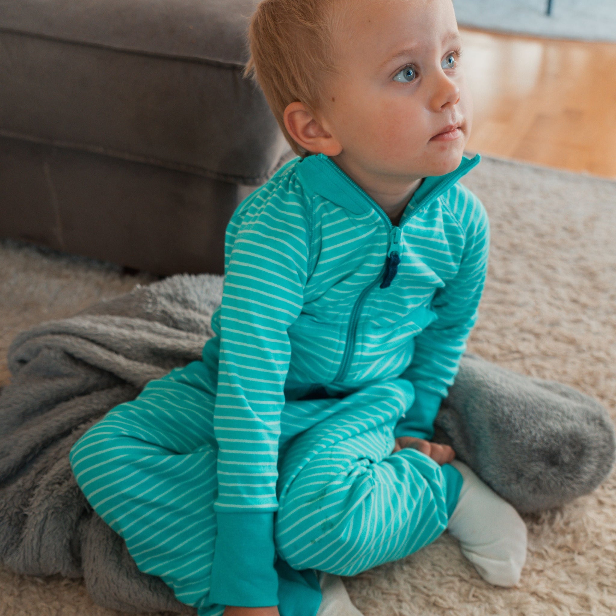 Zipjacka i härliga ränder. Bästa jackan som hängt med sen Geggamojas begynnelse, och som fortfarande är lika poppis! Bra som en lättare jacka ute eller som tröja inne över t-shirten. Breda sköna muddar för bästa komfort.